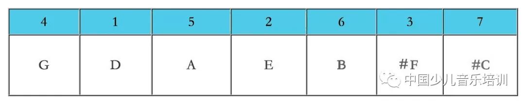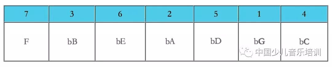 以降记号记载的调号对应表(由左往右递增)记号记载的调号对应表