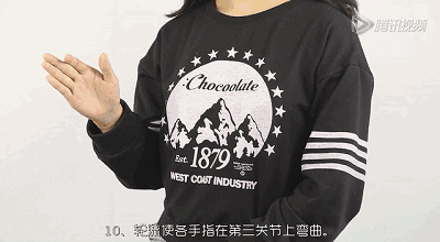 4、小指弯曲,尽可能地接近腕部,接触手掌、然后指尖沿手掌磨擦而过,一直到手指根部。