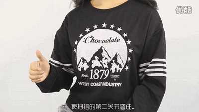 3、五指伸直,合理散开并略略伸展,接着各手指弯曲成90度。