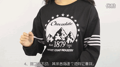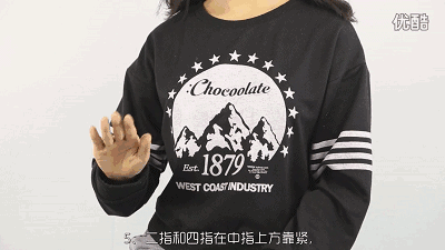 5、二指和四指在中指上方靠紧,然后在它的下方靠紧。