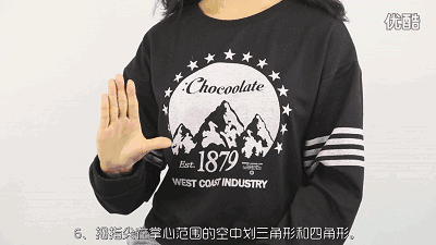 6、拇指尖在掌心范围的空中划三角形和四角形。