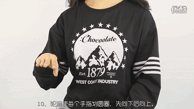 8、左手手心向内,右手手心向下,右手中指轻轻接触左手手心。