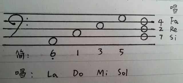 第四间是G(Sol),那么根据读谱原则,第五线就应该是A(La),我们继续数过“上加一间”的B(Si),就得到了“上加一线”的中央C啦。