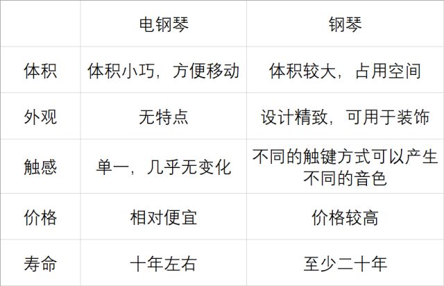 ▼简单来说,钢琴与电钢琴有以下几个特点