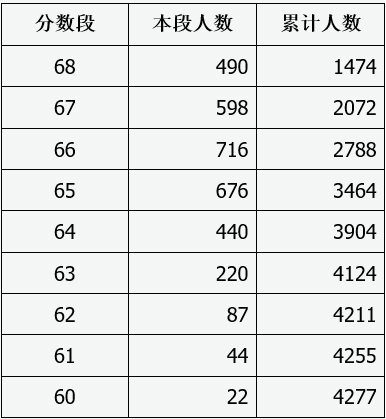 山西省2021年普通高考舞蹈统考成绩分段统计表